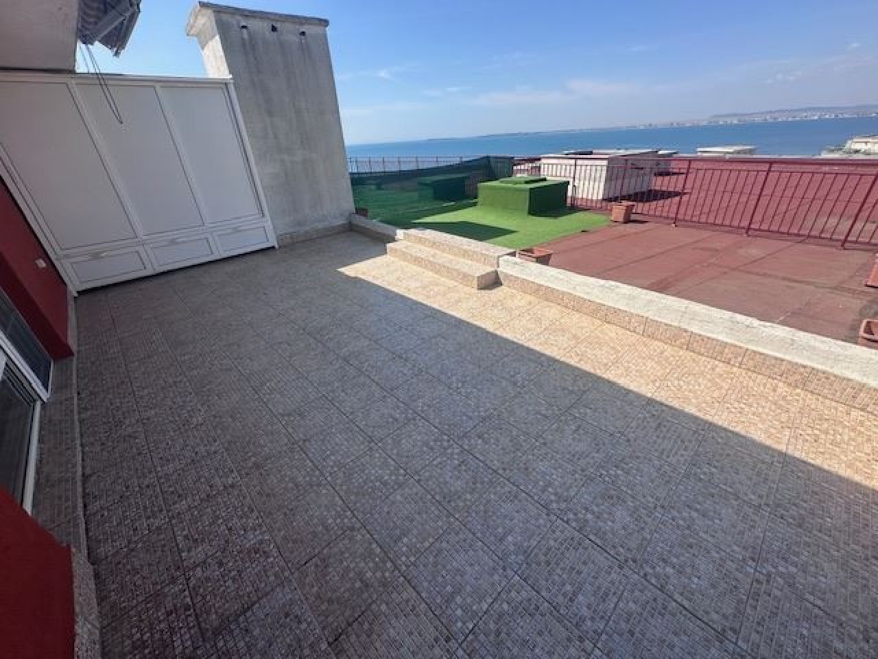 Wir präsentieren Ihnen ein außergewöhnliches Dreizimmer-Penthouse im obersten Stock eines prestigeträchtigen, geschlossenen Komplexes in Sveti Vlas – ein Zuhause, das Luxus, Meerblick und erstklassige Annehmlichkeiten in unmittelbarer Nähe vereint. Mit einer Gesamtfläche von 120 m² und einer zusätzlichen Panoramaterrasse beeindruckt die Immobilie mit einem designergefertigten Innenraum und einem Gefühl von Raum und Licht. Der Zugang ist einfach und bequem – das Gebäude verfügt über einen Aufzug bis in den obersten Stock.